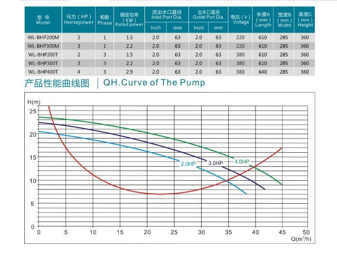 The BHP series of high-performance water pumps utilize an innovative hydraulic design. Under normal operating conditions, compared to other water pumps, BHP pumps combine high flow rate and high head, and possess superior continuous operation capability and stability.