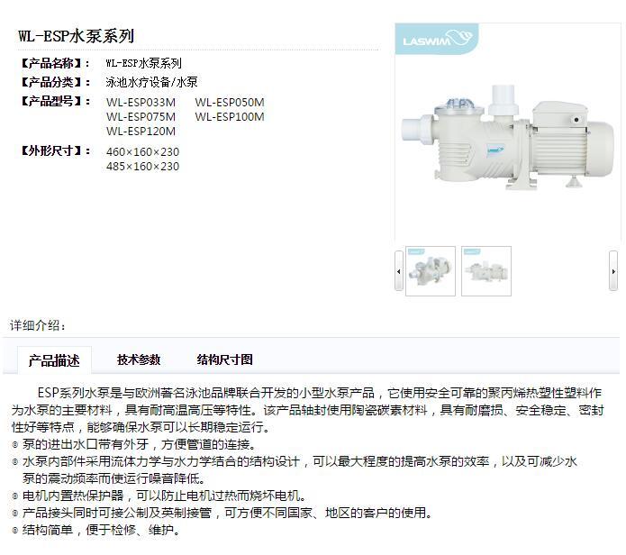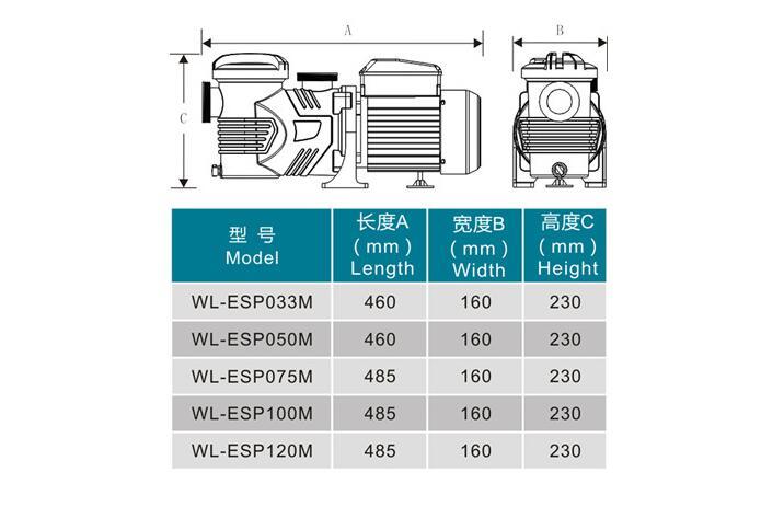 The ESP series water pumps are small pumps jointly developed with a famous European swimming pool brand. They use safe and reliable polypropylene thermoplastic as the main material, featuring high temperature and high pressure resistance. The product uses ceramic carbon material for shaft sealing, which is wear-resistant, safe, stable, and has good sealing performance, ensuring long-term stable operation of the water pump.